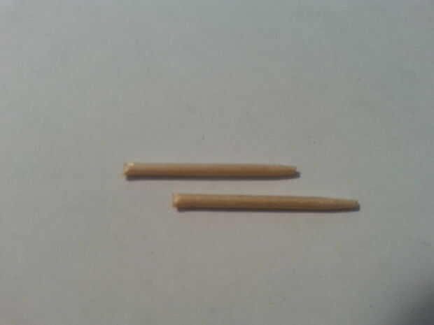 tomar un palillo de dientes y cortar por la mitad, luego cortó la mayor parte del extremo puntiagudo