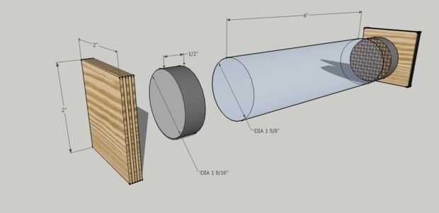 1) cortar madera contrachapada 2" plazas (dos para cada tubo)