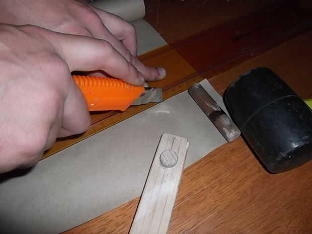 Comience con su 7cm largo poco de pasador y mida y corte una sección de papel de Kraft alrededor de 5mm más grande en cada extremo de la espiga motor forma. Mi rollo de papel Kraft es de 32cm de ancho, así que corte dos piezas, ambas 8cm ancho, 32cm de largo.