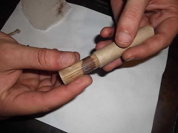 Después de la primera capa de papel Kraft ha sido rodada y pegan, rodarla bajo la palma de mi mano con incluso la presión otra vez. Hay otro diseño de la forma que tendrá que demostrar que he visto en otros lugares, pero qué pasa si uno usa como aquí, es el tubo se dobla alrededor de los lados de la forma, a veces arrugando la redondez del tubo. No es demasiado de un problema como se verá en el siguiente paso sin embargo.