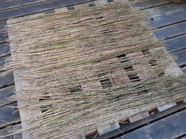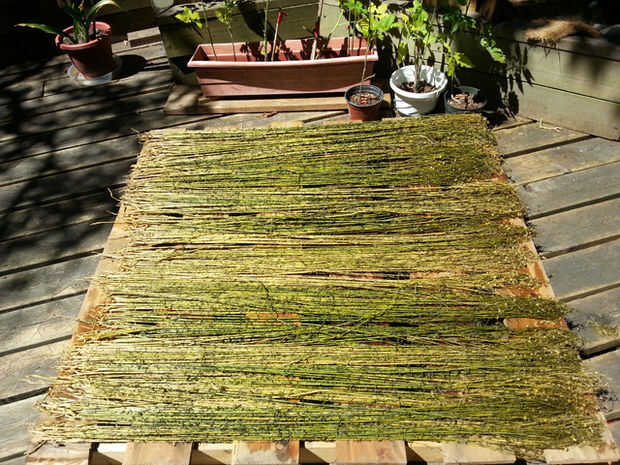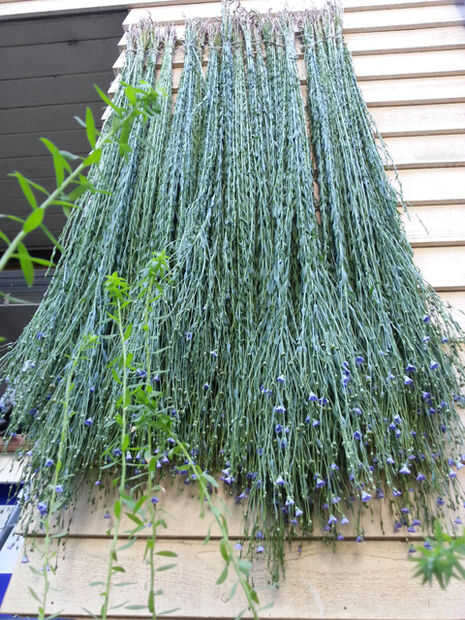 -El lino se quedó fuera al aire libre en la plataforma para secar dos días.