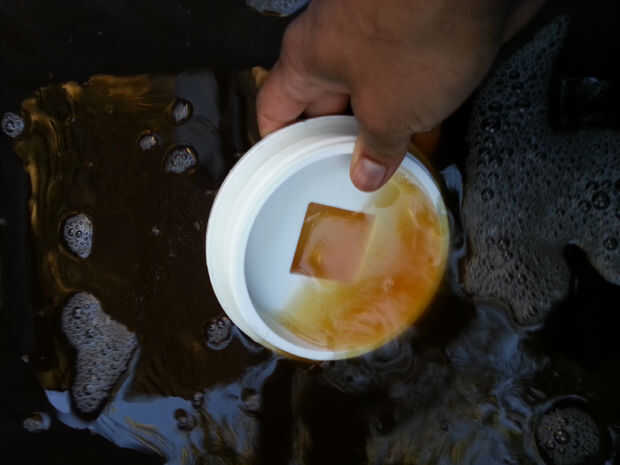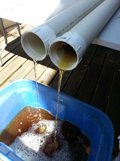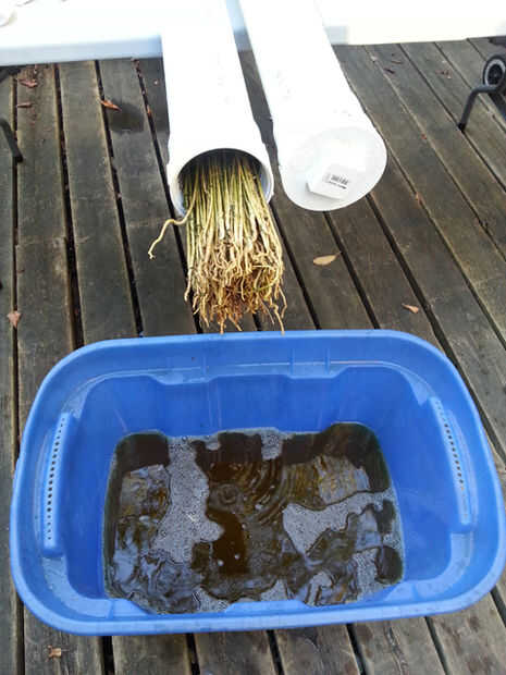 -Me decidí a cambiar el agua de uno de los tubos. He guardado el agua para regar el jardín y llena el tubo con agua limpia. Vamos a ver si hay una diferencia entre cambiar el agua al menos una vez durante el enriado primero y dejando el agua misma.