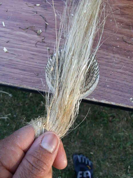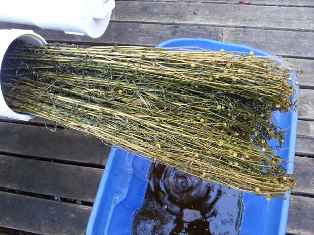 -Pude envolver los tallos de lino alrededor de mi dedo que muestran cuánto más suave la planta consiguió después el proceso retting.
