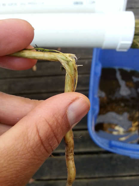 -Las plantas sienten un poco más suaves. Sólo la parte inferior, más cerca de la raíz, aún se rompe/snaps como cuando era todavía seco.