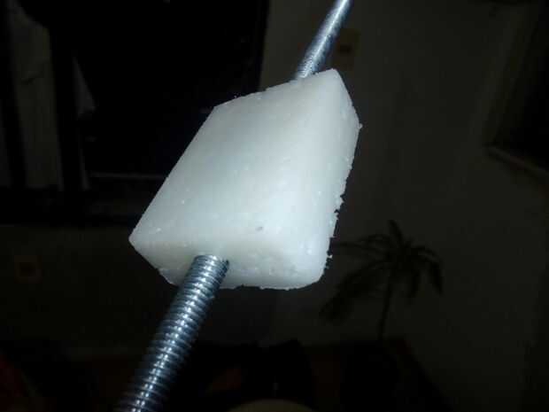 , Pasó seis meses encontrar pausas de cinco minutos para pegar en puntales y listones de la curva. Por último, las instrucciones del juego decir algo a lo largo de las líneas de, "usar nuestro tejido mágico y dope caro para encubrir esa escultura her