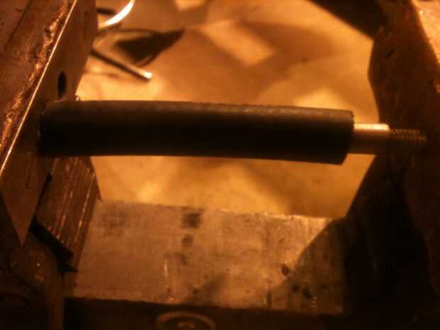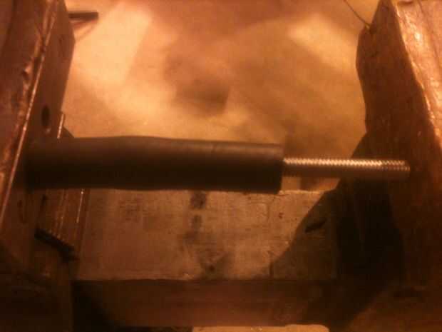 Ojala te tuviera un hilo extra todos desde el leadscrew poner alrededor, enrosque la tuerca en este y presione la manguera con un tornillo de banco. Recomiendo usar el hilo de todos como una guía cuando se presiona la tuerca de la manguera al tener el hilo de todo funcionamiento dentro de la manguera de modo que impide que la manguera de flexión. Apreto la tuerca en alrededor de una pulgada a la vez; cada vez que enhebrar el hilo todos a otra pulgada y apretando el tornillo hasta que ambos extremos para el hilo todos estaban tocando las mordazas de la prensa. Si la tuerca se ajusta libremente en la manguera utiliza una abrazadera para apretar la tuerca de la manguera. No hago esto a la mía sin embargo si encuentro alguna vez una situación donde hay una suficiente carga contra la tuerca del husillo que se mueve dentro de la manguera se terminan poniendo una abrazadera para evitar movimiento.