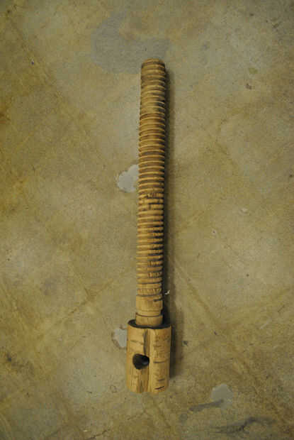 en la construcción de mi vicio de pierna, por la gracia del cosmos entró en posesión de este tornillo de madera enorme. Calculo para 100 años de edad; parece que ha visto suficiente acción haber ganado unos corazones púrpura y un título de postgrado. Pero la tuerca necesaria, ese componente necesario para activar la fuerza de rotación en la fuerza lateral amplificada, en ninguna parte ser encontrado. Tenía la opción de hacer la tuerca de conexión en un torno de madera, pero también tener acceso a un router CNC. Pude la máquina una tuerca a dimensiones precisas y, si tengo cuidado, puedo hacerlo bien la primera vez, no perder ninguna madera.