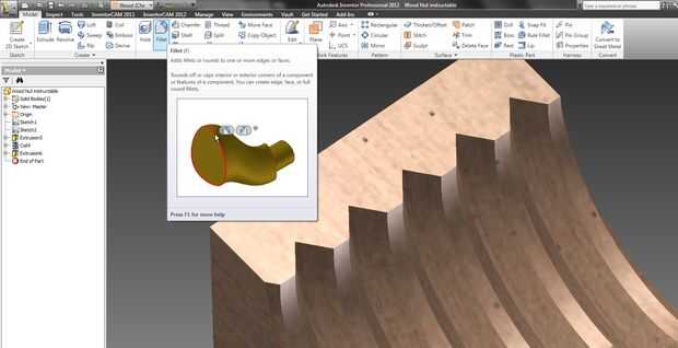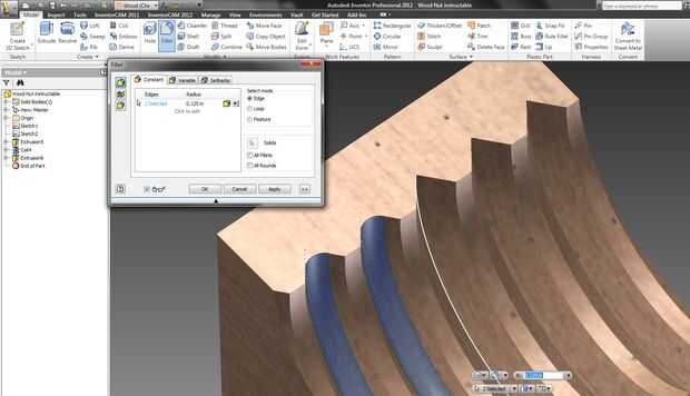 - Ahora filete todas las esquinas interiores con un radio de 1/16", ya será el radio de la herramienta para la parte final. Esto no va a cambiar cómo la parte ha terminado pero dará una exacta representación de ella.