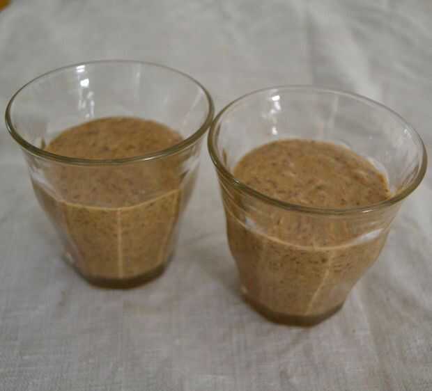 La crema de la tuerca en dos tazas para microondas y añadir el chocolate.