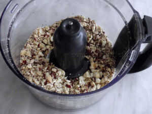 Precaliente el horno a 180° C durante 10 minutos. Yo siempre uso un horno. De lo contrario, ajuste el horno a la temperatura adecuada. Tomar una lata grande de asación y untar con mantequilla vegana y hacia los lados un poco demasiado. Empuje el papel para hornear bien en él. Tomar su procesador de alimentos y coloque la cuchilla en. Añadir las avellanas y anacardos. Coloque la tapa y pulso hasta que se desmoronaron encima.