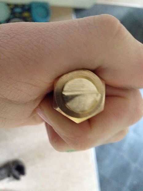 a continuación, tome la parte superior (cabeza) del perno, dan la vuelta y cortar el segmento de 'una hora' de la parte superior del perno. Esto debe estar en el lado que se muestra en la foto de lo contrario no funcionará. No ir bastante al punto central: mantener sólo tímido. Lo mejor es un poco a la vez. archivo un poco, ver si bloquea, archivo un poco más, ver si bloquea... Si vas demasiado la tuerca y perno flojo y no funcionará.