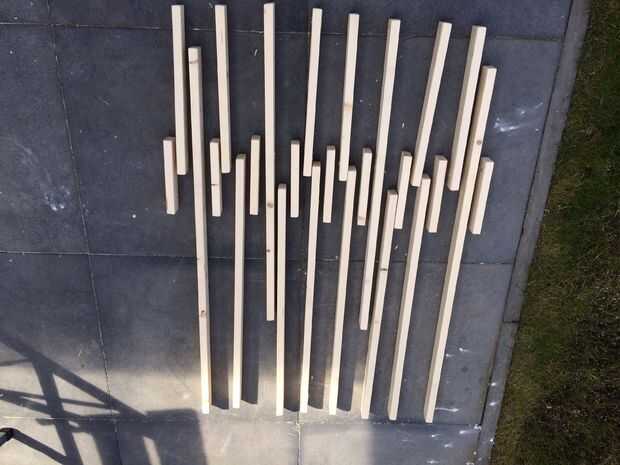Om het rijgen wat makkelijker te maken es het handig om alles klaar te leggen.
