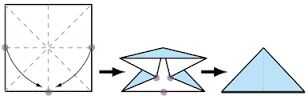 Luego doblar las esquinas del papel para hacer una forma del triángulo