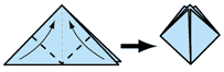 necesita una hoja de 8.5x11 de papel.  Cortar un cuadrado, pero guardar la tira larga.Puede rociar algún perfume en la flor al final para hacer que su lirio de origami tiene un aroma agradable.1. doble los bordes de dos diagonales, entonces doble.2.