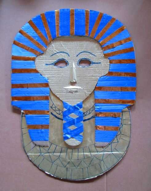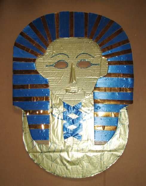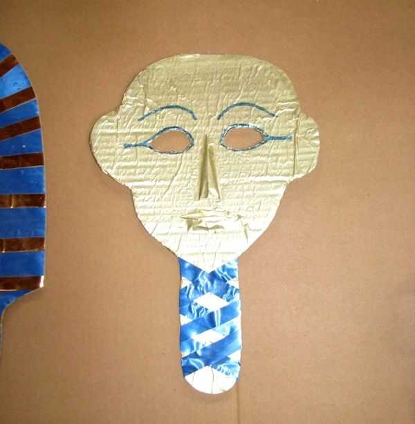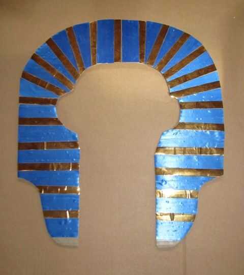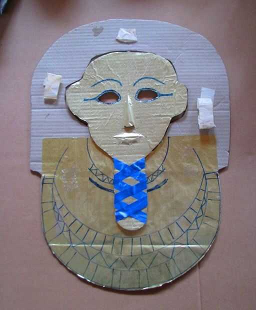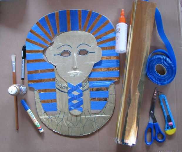 Usted puede solo decorarla plano si lo desea (ver 2 últimas fotos para ideas). Utiliza papel oro de dentro de una caja de bombones (pegada sobre con pegamento de PVA o arte) y decorado con cinta de regalo oro, pegado encendido con pegamento artesanal claro y Floreria azul de la cinta. Las características fueron dibujadas con marcador azul.
