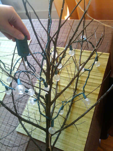 Os adjunto el cable de las luces a las ramas con unos clips de gator, desde que es lo que yo tenía por ahí. Parece que han levantado muy bien hasta ahora.