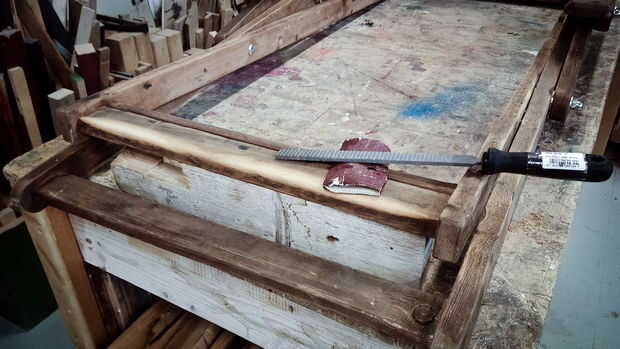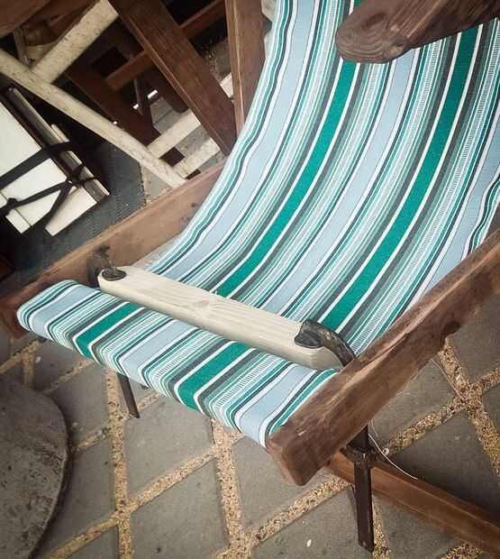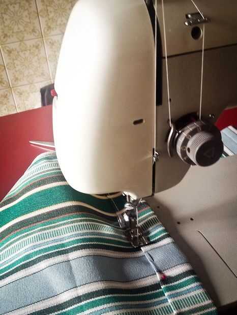 Después de coser el dobladillo he cosido un lazo en un extremo de la tela y usa una abrazadera para el borde opuesto para probar diferentes longitud y determinar la mejor solución. En mi opinión y con mi geometría de la tela debe permanecer estirada cuando la silla está cerrada.