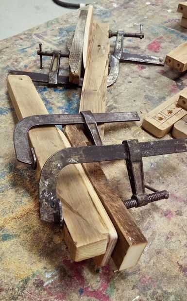 Tableros de sillones eran listones de la cama. He perforado los agujeros para tacos y había pegado a soportes de madera.
