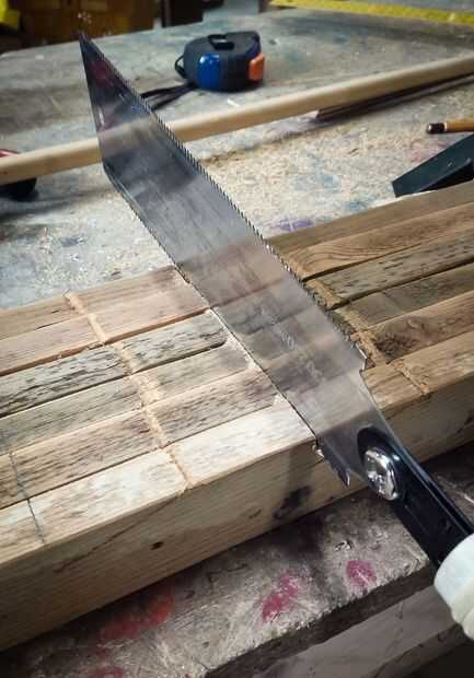 Draw ranuras de las mismas dimensiones en las caras de madera, luego cortarlas a mano o con una sierra. Mediante un archivo y papel de lija redondear los bordes.