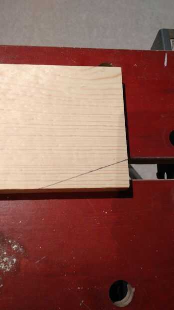 Para los soportes de brazo, debería tener dos pedazos más pequeños que son unos 12 1/2" de largo. Uno de ellos y medir 1/2" a cada lado y trazar una diagonal entre ellos. Cuidadoso corte de éstos, ya que son más pequeñas piezas. Mejor a la pieza antes de cortar.