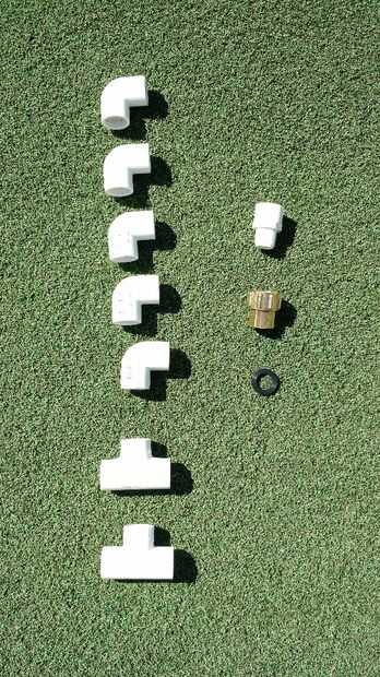 - PVC para conexión de manguera de jardín (dos partes, una de latón, un PVC)