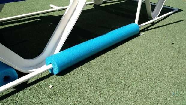 Dejé sin noodled secciones donde el marco de PVC reunió la estructura de la silla, pero que el PVC es, básicamente, completamente cubierto de tallarines de la piscina.