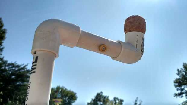 En este momento en la construcción de la silla, hice el rociador de la niebla. Para ello, he añadido un codo de PVC a la pieza vertical que estaba del resto de la estructura. De eso codo viene una longitud pequeña del PVC. El tapón de vapor se atornilla en un agujero taladrado en la tubería. Otro codo fue agregado al extremo de la tubería y nos pegamos un corcho en el extremo de que restringe el flujo de agua en exceso. Ángulo del rociador de la niebla en la dirección de los ocupantes de la silla y probarlo!