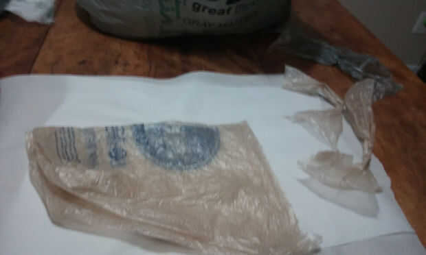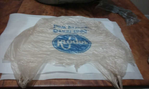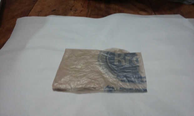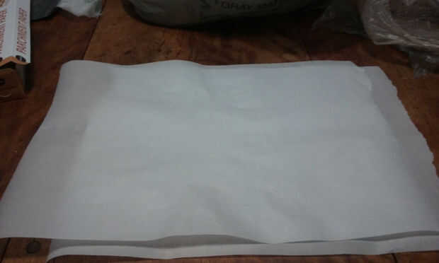 6. poner la bolsa de plástico doblada entre las dos piezas de papel de pergamino