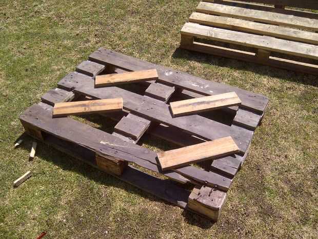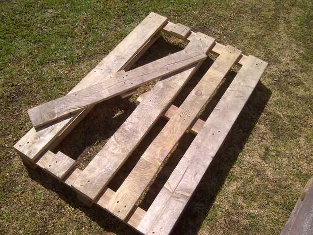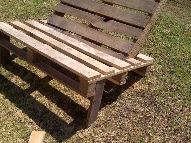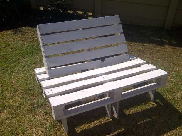 de viejos palets encontradas una fábrica de metal de hoja, una silla simple fue hecha usando sólo tres palets viejos. Con unos simples cortes de las ranuras de la tumbona en una forma muy estable. Alll que se fue un poco de lijado, seguido de tres capas de pintura blanca de PVA. Una vez seca la tumbona está listo para usar.