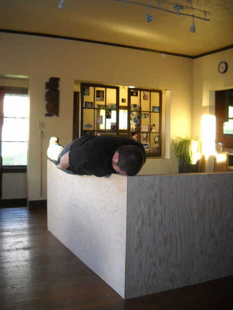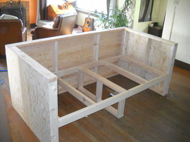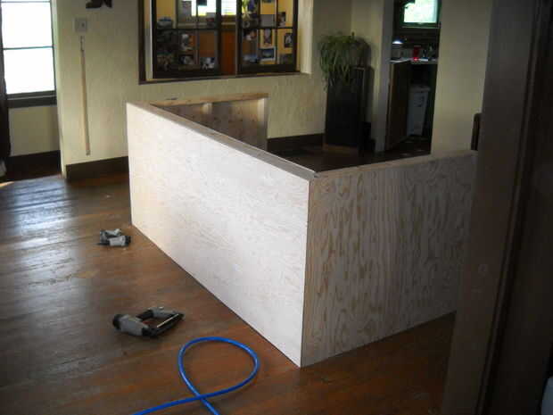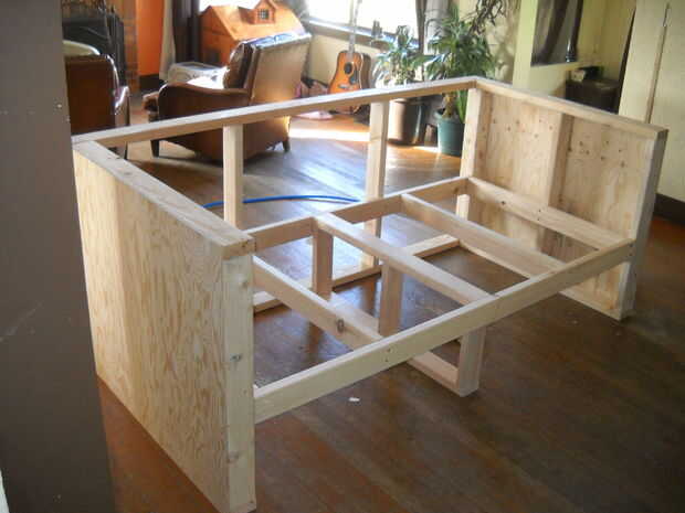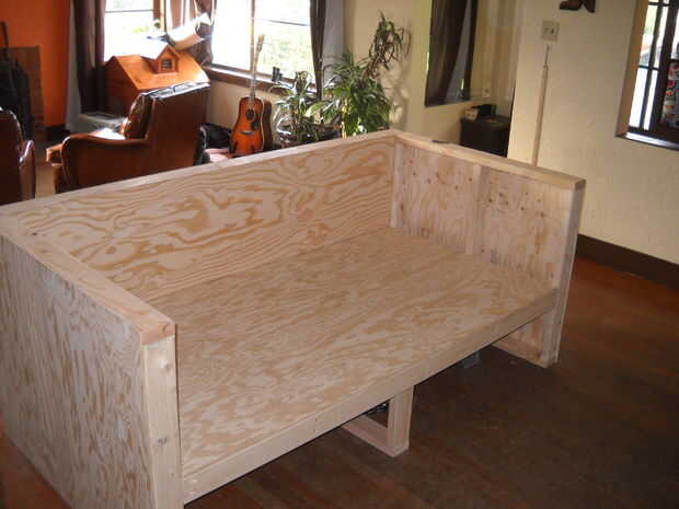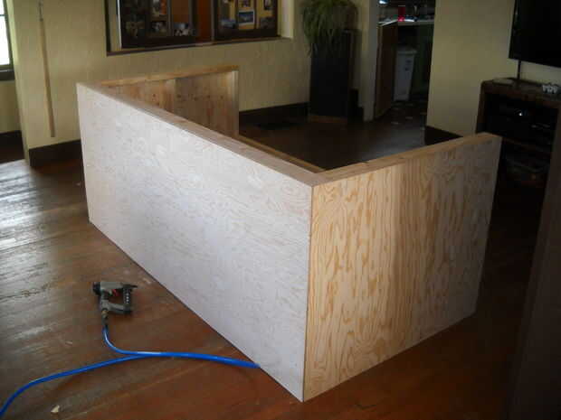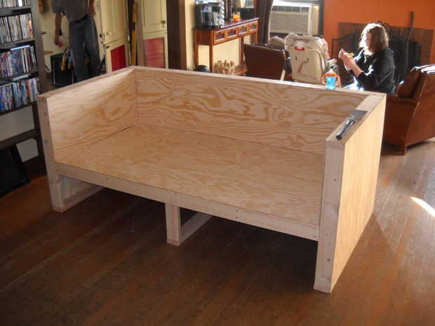 Cortar cuadrados de capa de 1/4 de pulgada. He utilizado una grapadora neumática y pegamento. Mi hijo ayudando en este último...