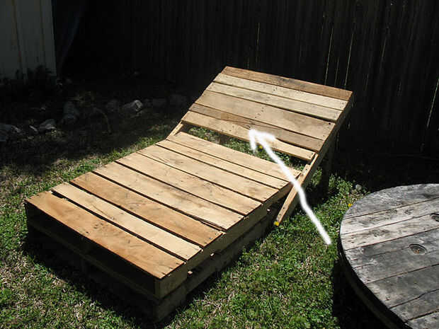 Tome sus 2x4s, ya sea desde otra plataforma como hice o uso de nuevo de la yarda de la madera y adjuntarlos a las mejores tablas a cada lado. Estas necesidad de ser más largo que tu respaldo (mejores tablas) para que puedan llegar a y montar al lado de las paletas de asiento, como se puede ver en la imagen.