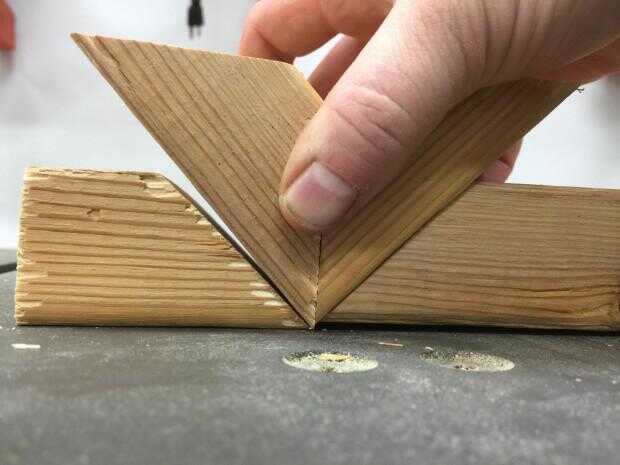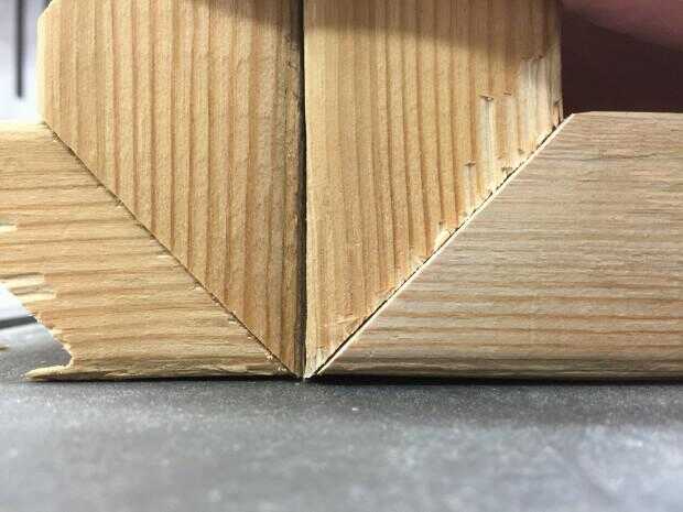 Una vez que has realizado todos los cortes, utilice la tabla superior como su referencia para el plano. Ensamblar todas las 4 piezas y presione contra la mesa para buscar las brechas.