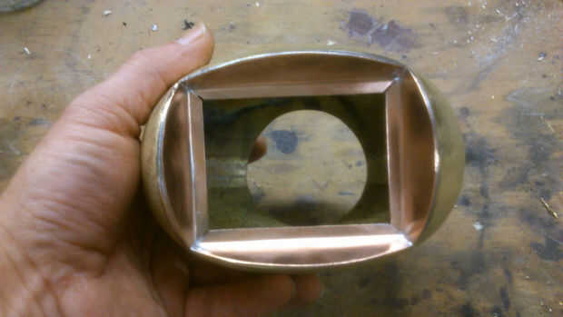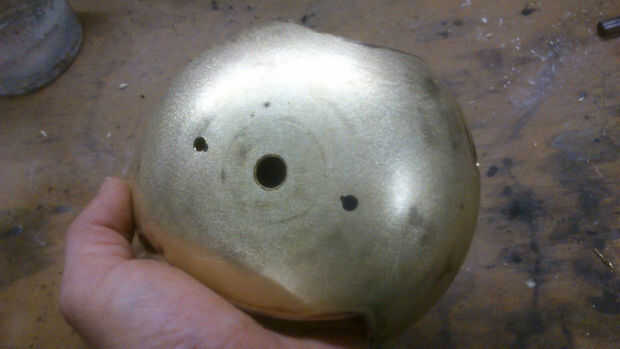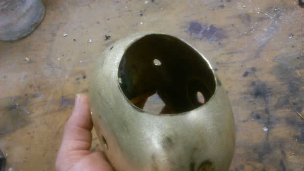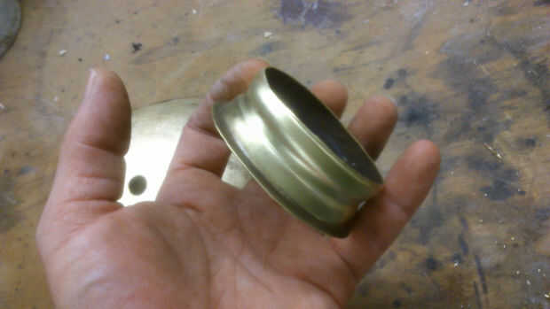 En primer lugar, cortamos un tubo de latón para el instrumento de medición. Buscar un diámetro adecuado (Foto 5) y cortar un agujero con este diámetro de la esfera. Soldadura lo. Hacer una pequeña ventana de cobre con el diámetro interior de la pantalla del Smartphone y soldadura en la esfera. (Foto 6).
