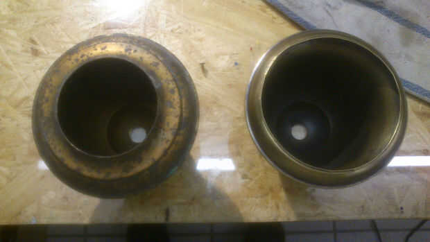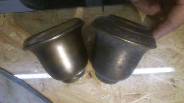 Aquí tengo 2 viviendas antiguas de un zócalo de lámpara. Cortar la parte superior del diámetro de los altavoces y asegure los altavoces con pegamento UV en la vivienda. El caso de diseño como desee. IMADE una cruz de alambre de latón para montar los altavoces.