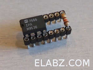 Le enchufamos un temporizador 555 de repuesto en los zócalos para mantenerlos juntos (por eso la foto puede ser tan confuso - el 555 es un marcador de posición) y doblar las puntas de las resistencias de 120 ohmios a tamaño, conectado y soldadas dentro de las tomas. Que hicieron el "transportista" rígido y se pudo quitar el marcador de posición 555.