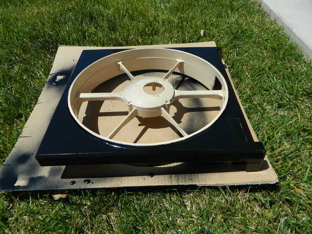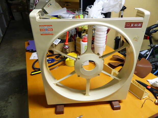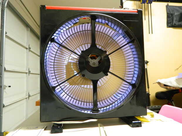 Es esencial que el flujo de aire del ventilador esté sin obstrucciones de bafles o piezas que limitan el flujo. Sobre todo porque el usé el ventilador es un ventilador viejo, la eficiencia del ventilador ya era baja. Al liberar el ventilador, aseguraría flujo óptimo sin alterar el ventilador eléctrico. La estética del ventilador también fue vital para el túnel de viento como un todo ya que era una parte integral del instrumento en su conjunto. Por lo tanto, era aerosol pintado con un esquema de color negro y oro (colores de la escuela) y un top rojo con fines de precaución.