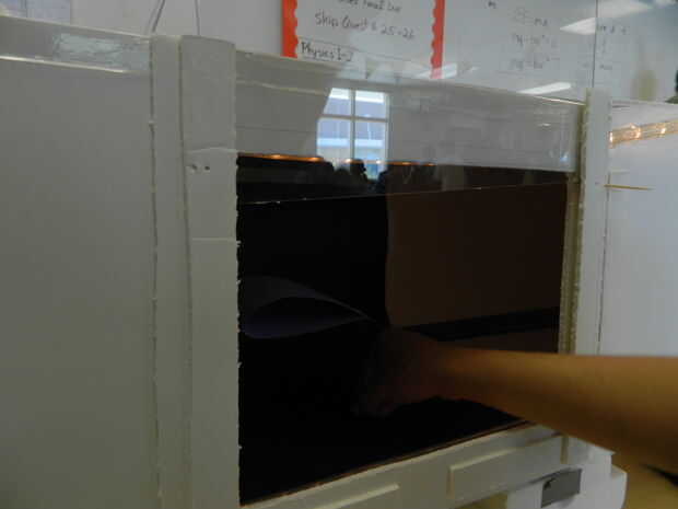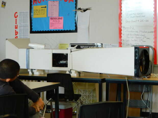 Puesto que el proyecto fue patrocinado por nuestra escuela secundaria profesor de física AP, trajimos en el túnel de viento para mostrar a los estudiantes. Esta exposición fue el tiempo que sería justo antes de los estudiantes aprendidos sobre los conceptos básicos de la aerodinámica y arrastre. Ayudó a explicar mejor qué factores van en la B en F =-bv.