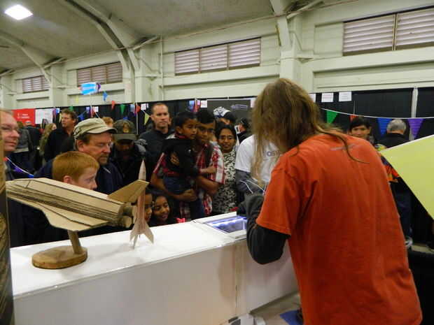 En 07 de diciembre de 2013, Ian y lo demostró nuestro proyecto en San Diego primer anual Mini MakerFaire. Esta oportunidad se presentó cuando me enteré de MakerFaire de la búsqueda de ferias de Ciencias locales. Planeado originalmente introducir el proyecto en una feria de Ciencias pero las calificaciones demasiado limitante y estrictos. Proyecto Paperclip pedía más libertad y el bricolaje aspecto frente a los tableros de carteles gráficos.