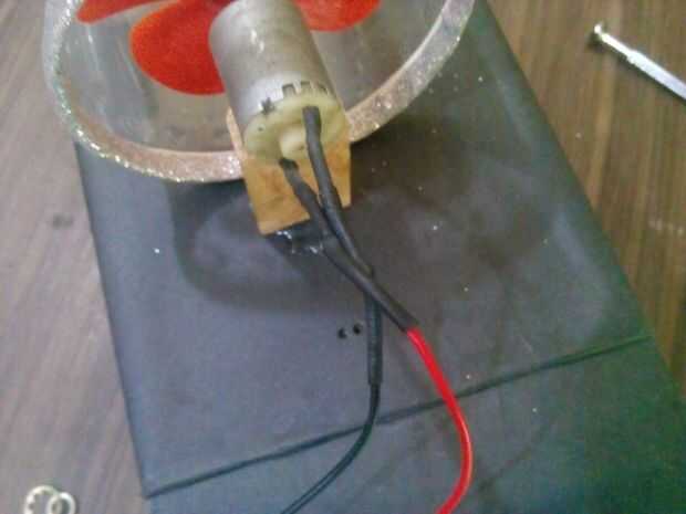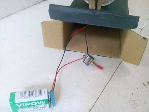 Ahora crear pequeños agujeros en la caja detrás de los bloques de madera y tome los cables del motor dentro de caja.