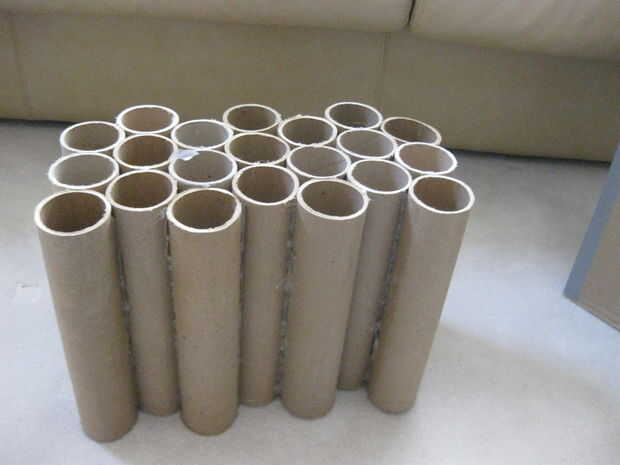 -Corte los tubos de cartón para longitudes de 12 pulgadas (usted necesitará cerca de 18).