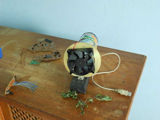 Hola a todos! Mostrando a este tunel de viento hice desde cero en una noche aburrida, se seca de hojas de menta en 48h y estaban seco cracker! Al principio usaba un enchufe del USB como fuente de energía pero después de la primera prueba se ha cambiado por una verruga de la pared.