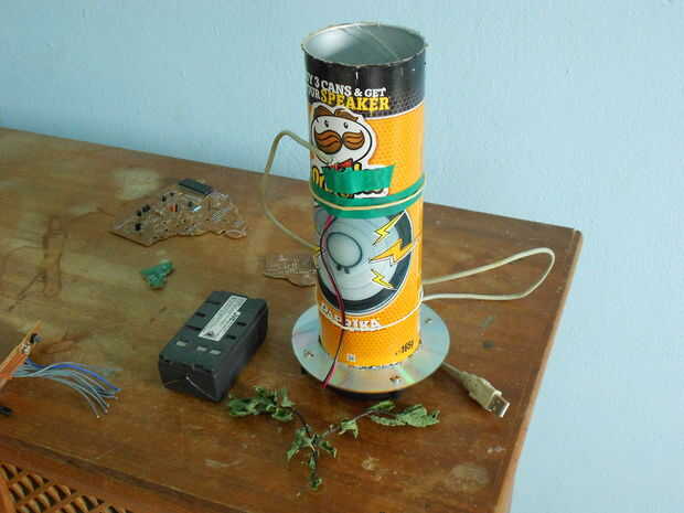 Qué haces cuando tienes que muchas cajas vacías de Pringles...También puede utilizar tham como un Ampfilier acústico...Paso 1: Lo que usted necesita... 1. una caja de Pringles2. palitos de3. pegamento de carpintero4. tin tijeras de hojalatero5. Sierr