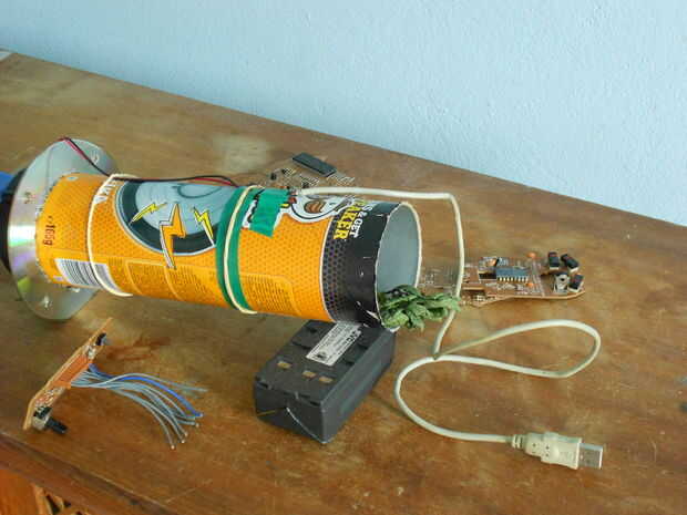 la turbina de viento de Pringles (a.k.a. poder Leech o Pleech) es un intento de convertir simples que se encuentren en la tienda de hardware y otros lugares en una fuente de alimentación de baja tensión de trabajo. El Pleech está diseñado para tomar