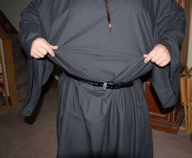 Encontré que poniendo un cinturón alrededor de la túnica tiene 2 ventajas.