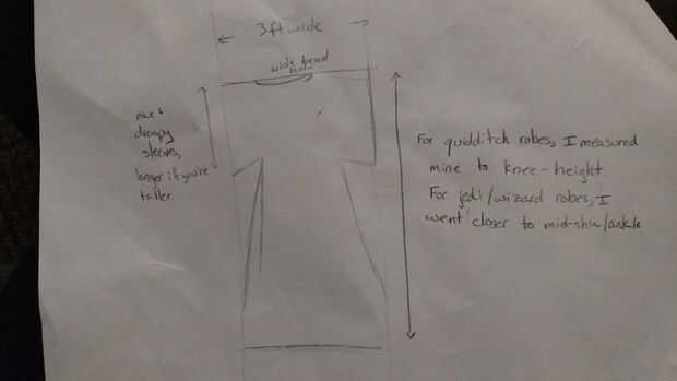 Doble el pedazo grande de poliester por la mitad a lo ancho la parte Brillante quede en el interior. Trazar la forma de su manto con tiza blanca de tela. Medí yo mismo hacia fuera contra la longitud, haciendo que la parte inferior de la mitad de la pantorrilla en mi cuerpo. Luego, medí los brazos, dejando los lazos del brazo de caída lánguida y agradable cerca de 14 pulgadas para un look clásico asistente. Si tuviera que hacer de nuevo, probablemente habría dejé más. Asegúrese de dejar los hombros un montón amplios y dejar espacio en las axilas (más de 8 pulgadas para mi) para hacer más fácil conseguir el traje de encendido y apagado. Cuando haya trazado la forma de la túnica, es tiempo de cortar. Prender juntos las capas de tela para que no muevan alrededor y con cuidado cortar el traje con una tijeras afiladas.