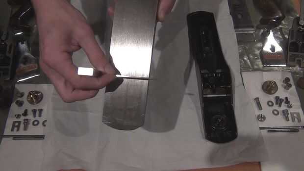 Use escuadra un ingeniero para comprobar la rectitud de los lados de la suela y un borde recto para comprobar la planitud de la suela. Esto dará una idea de donde debe extraerse metal.