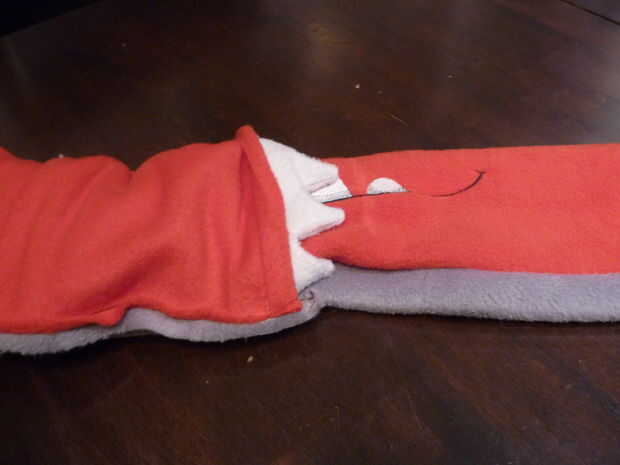11.8 voltear el borde de las garras dentro de la bufanda, perno cerrado y superior coser juntas.