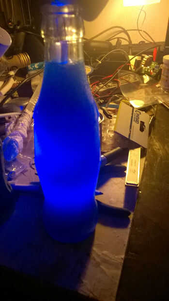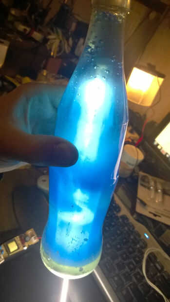 Dependiendo de cómo turbias desea el fluido a ser empezar a experimentar con las proporciones de color. Como veis aquí, uno tiene un poco a uno oscuro, un poco claro. Su es importante dejar que la metilcelulosa a colocar durante la noche después de cada mezcla para que las burbujas no distorsionan la apariencia final. NO olvides añadir un poco de enjuague bucal.