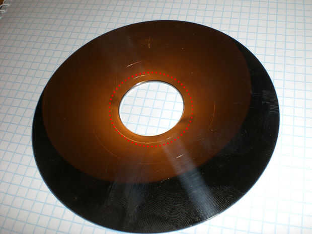 Agrande el orificio en uno de sus discos para el paso en el eje del motor.