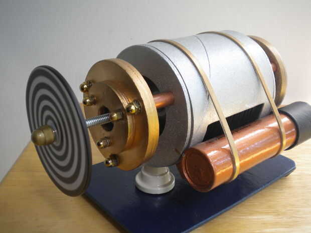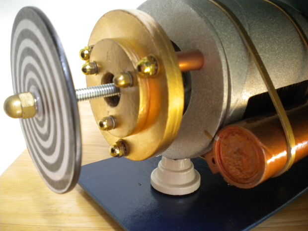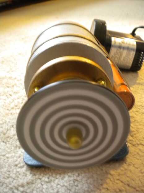 Se realizó el proyecto original de discos espaciados, cartón centrados en una barra de acero roscada. El montaje del rotor fue suspendido en un papel de tejido de cuarto de baño por una Asamblea apoyo. Los rodamientos de grado aviación estaban alojados en asambleas de retención. Cuando una corriente de aire de una bomba de aire eléctrica fue inyectada en el colector, la corriente torció en espiral hacia adentro entre los discos hacia puertos de escape que rodea el centro de cada disco. La corriente sale de la turbina del eje de rotación. Velocidad máxima del rotor se midió a 2.220 RPM. Tenga en cuenta que el siguiente instructivo se supone que tiene un CTT pleno funcionamiento listo para pintura y personalización de.